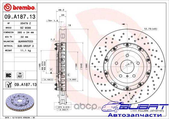 Интернет-магазин «Виват» предлагает купить запчасть артикул «09.A187.13» производства «Brembo». Чтобы осуществить покупку, необходимо выбрать наиболее интересующую Вас позицию. Разные поставщики предлагают различные условия покупки деталей: